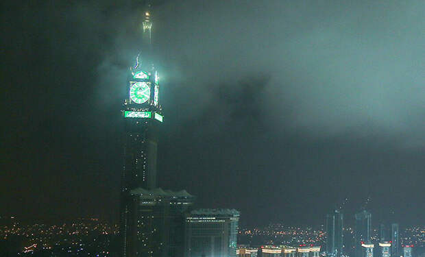 Забудьте о Биг-Бене: в Мекке создали хронометр, который заставляет другие мировые часы выглядеть карманными. Этот гигантский механизм виден за 30 километров — установленный на высоте в 450 метров циферблат стал настоящим символом денежного успеха саудовских шейхов.