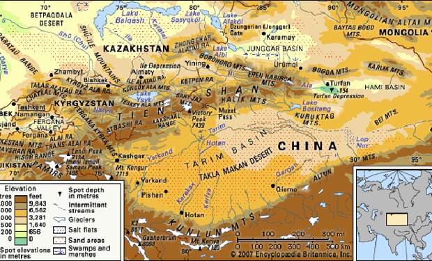 Пустыня Такла-Макан на западе Китая давно считается одним из самых негостеприимных мест планеты. Огромное море песка, бесконечно колышущееся под ветром, простирается на сотни километров. Здесь нет рек и почти нет растительности, лишь пересохшие русла напоминают о временах, когда вода все же доходила до этих земель.