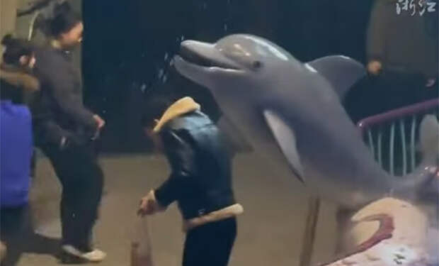 Инцидент произошел в китайском океанариуме Dalian Sunasia Ocean World и мгновенно разлетелся по сети.