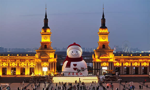 Эта приветливая улыбающаяся фигура символизирует гостеприимство Харбина и ежегодно подтверждает статус города как столицы ледяного зодчества.