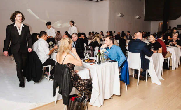 На столах стояли пластиковые тарелки, официанты предлагали вино… и молоко — которое, к удивлению всех, выбрали несколько гостей. Меню было простым, но люди относились к этому как к событию. На стенах висели фотоколлажи: Мехран якобы с Эйнштейном, с Мэрилин Монро, с Аль Капоне — настолько убедительно, что некоторых гостей это даже не смутило.