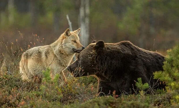 Фотограф Ласси Раутиайнен стал первым человеком, которому удалось задокументировать этот аномальный союз. В течение десяти суток он наблюдал, как волчица и медведь ведут себя словно старые друзья.