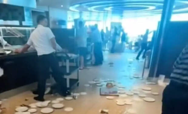 Огромная волна внезапно ударила по круизному лайнеру Vision of the Seas, следовавшему у берегов Бермуд. Судно резко накренилось, по палубам полетела посуда, а пассажиры в панике хватались за поручни. На видео, снятом туристами, видно, как рестораны и бары заполняет вода, а официанты пытаются удержать подносы с едой.