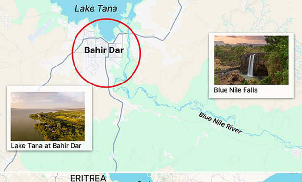 Ученый приводит и современные свидетельства. Журналистка и путешественница Вирджиния Морелл описывала Бахр-Дар как «райскую местность, утопающую в цветах и пении птиц»: здесь растут манго, инжир, акации и папирус, воздух наполнен ароматом жасмина и имбиря, а вдоль Голубого Нила гуляют цапли и вьют гнезда сахарные птицы.