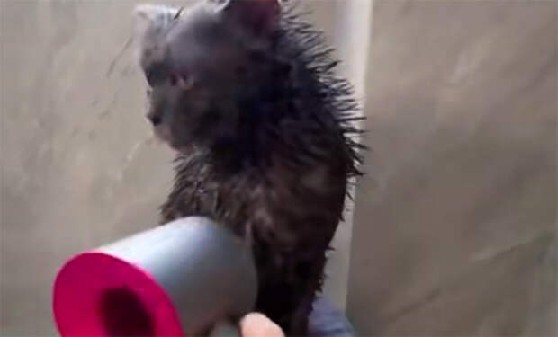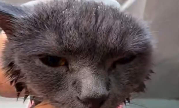 На кадрах видно, как кошка внимательно следит за руками человека, будто понимает каждое его движение. Когда на нее направляют струю душа или фен, она лишь моргает и терпеливо ждет, пока уход за шерстью завершится.