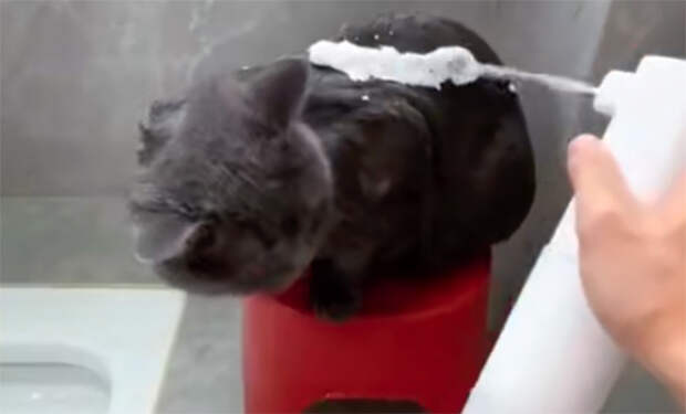 Пока большинство кошек шарахаются от воды и превращают купание в бой, эта серая любительница душа ведет себя так, будто посещает спа. На видео она спокойно сидит на красном табурете, пока хозяин поливает ее водой и намыливает густой пеной. В сети же по уникальному животному уже начали сходить с ума.