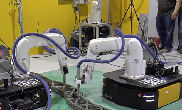 Ученые из Сингапура идут еще дальше: их 3D-принтеры-роботы работают как «рой» — несколько машин одновременно печатают бетон по одной цифровой схеме.