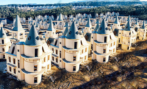 К долине между Стамбулом и Анкарой сегодня приезжают скорее из любопытства: на ее склонах так и стоят сотни одинаковых замков, построенных еще в середине 2010-х. Несмотря на многомиллионные вложения, проект так и не был завершен — работы остановлены, коммуникации не подведены, а сам комплекс остается замороженным уже несколько лет.