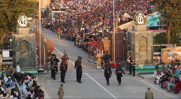 Церемония Вагах на границе между Пакистаном и Индией. Происходит ежедневно с 1959 года и включает присутствие солдат с обеих сторон и снятие государственных флагов в вечернее время.