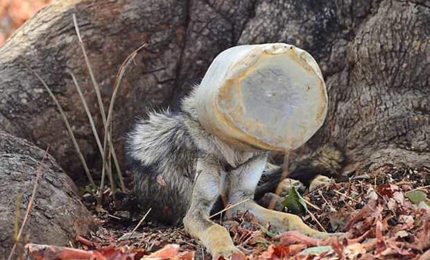 Местные жители Нагпура заметили в лесу необычное движение между кустами. Из чащи на них вышел волк, на голове которого плотно застряла пластиковая банка. Животное выглядело ослабленным и, похоже, не могло самостоятельно освободиться.