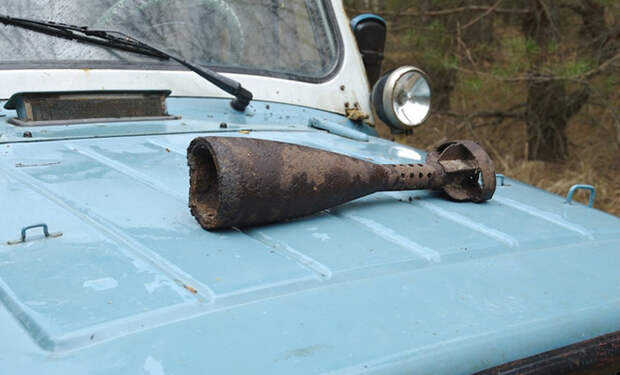 Еще по пути к поляне начали встречаться странные находки. В болотистой местности под ногами попадались фрагменты минометных снарядов, словно когда-то здесь велись интенсивные испытания боеприпасов.