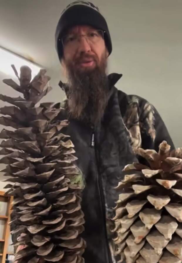 Турист нашел в лесу шишки размером с арбуз: одна может весить до 10 килограммов