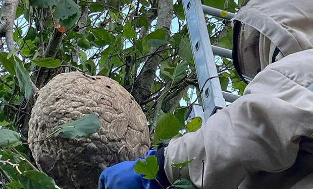 Работа опасная: каждый улей может содержать сотни агрессивных шершней длиной до пяти сантиметров, чей яд способен вызвать сильнейший отек и анафилактический шок.