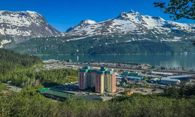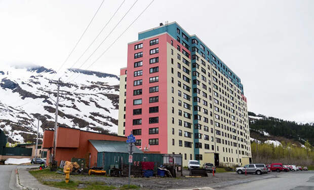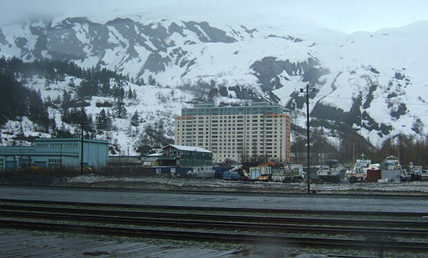 Уиттир это всего около 270 человек, затерянных между горами и океаном. Большая часть из них живет в Begich Towers огромном сером доме, построенном для военных еще в 1957 году. Внутри сотни квартир, маленький магазинчик, службы, даже почтовые ячейки, потому что в Уиттире нет привычных адресов.
